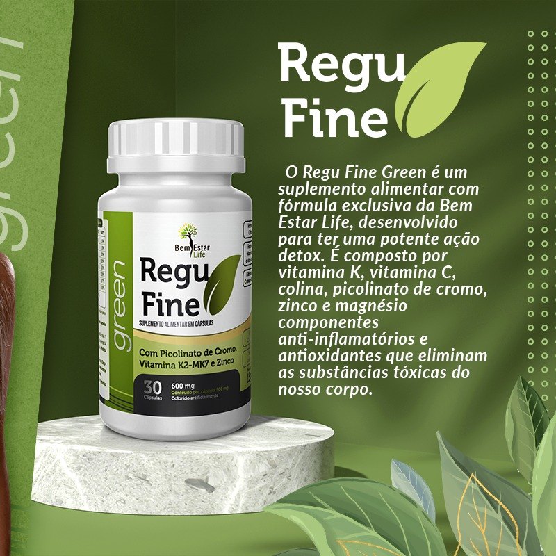 O REGU FINE GREEN é um suplemento alimentar com fórmula exclusiva da Bem Estar Life, desenvolvido para ter uma potente ação detox.